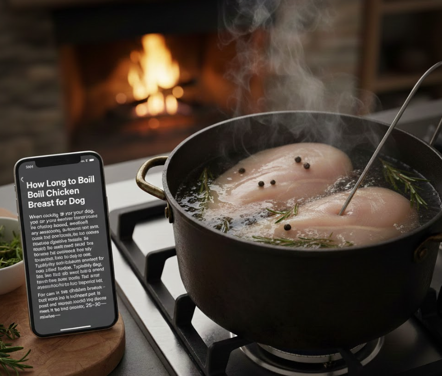 Typically, it will take around 15-20 minutes to boil a boneless, skinless chicken breast for your dog. You can check if it’s cooked by cutting into the thickest part of the breast and ensuring the meat is no longer pink. For bone-in chicken breasts, boiling may take a bit longer—25-30 minutes.