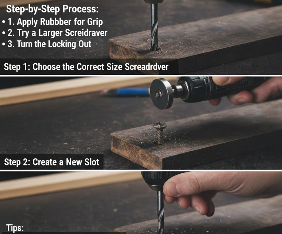 Sometimes, it’s the screw head itself that becomes stripped, making it impossible to grip with a screwdriver. Here’s how to handle this situation: