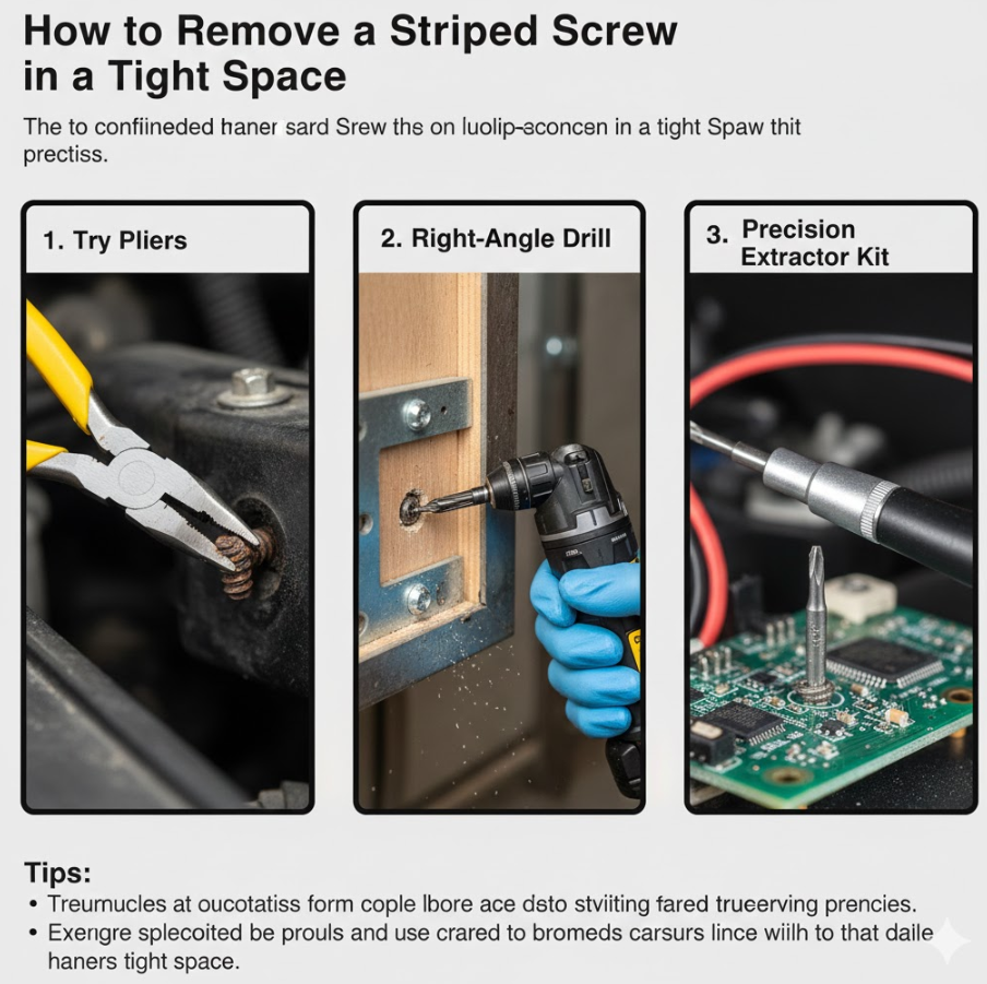 When dealing with a stripped screw in a tight space, access can be a significant issue. Here’s how to tackle this problem:
