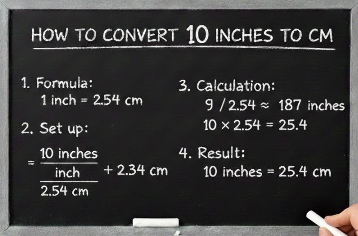 Now, let’s apply the formula to convert 10 inches to cm:10inches×2.54=25.4cm