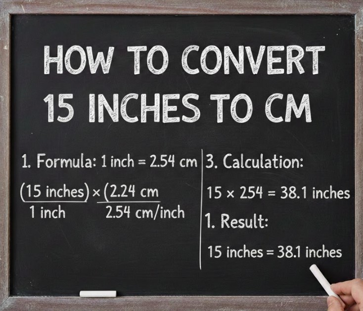 This formula is key to performing accurate conversions. Let’s start by converting 15 inches to centimeters.