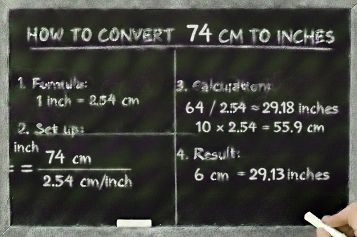 Therefore, 74 cm is equal to 29.13 inches (rounded to two decimal places). Understanding this simple formula will make it easy for you to convert any other centimeter measurement to inches.